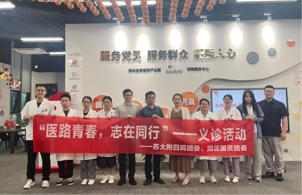8月16日下午,在苏州生物医药产业园党群服务中心,苏州大学附属第四医院团委、苏州工业园区国资团委“医路青春,志在同行”义诊服务联盟顺利举办第一期活动。此次义诊活动旨在以实际行动践行“健康中国”战略,通过专业化医疗服务与健康教育,提升公众健康意识,为园内企业青年职工及子女健康保驾护航。