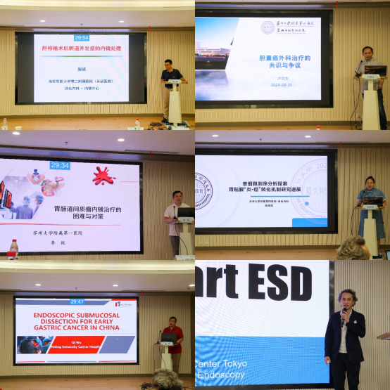 内镜主题环节,苏州大学附属第一医院消化内科李锐主任讲授消化道间质瘤在内镜诊疗中的困难及对策;苏州大学附属第四医院陈雨琪博士报告了单细胞测序分析技术在探索胃黏膜“炎-癌”转化机制中的研究进展;北京大学肿瘤医院吴齐主任详细介绍了中日内视镜技术。本次学习班特邀的日本著名内镜专家大圃研教授讲授了消化道早癌ESD技术。