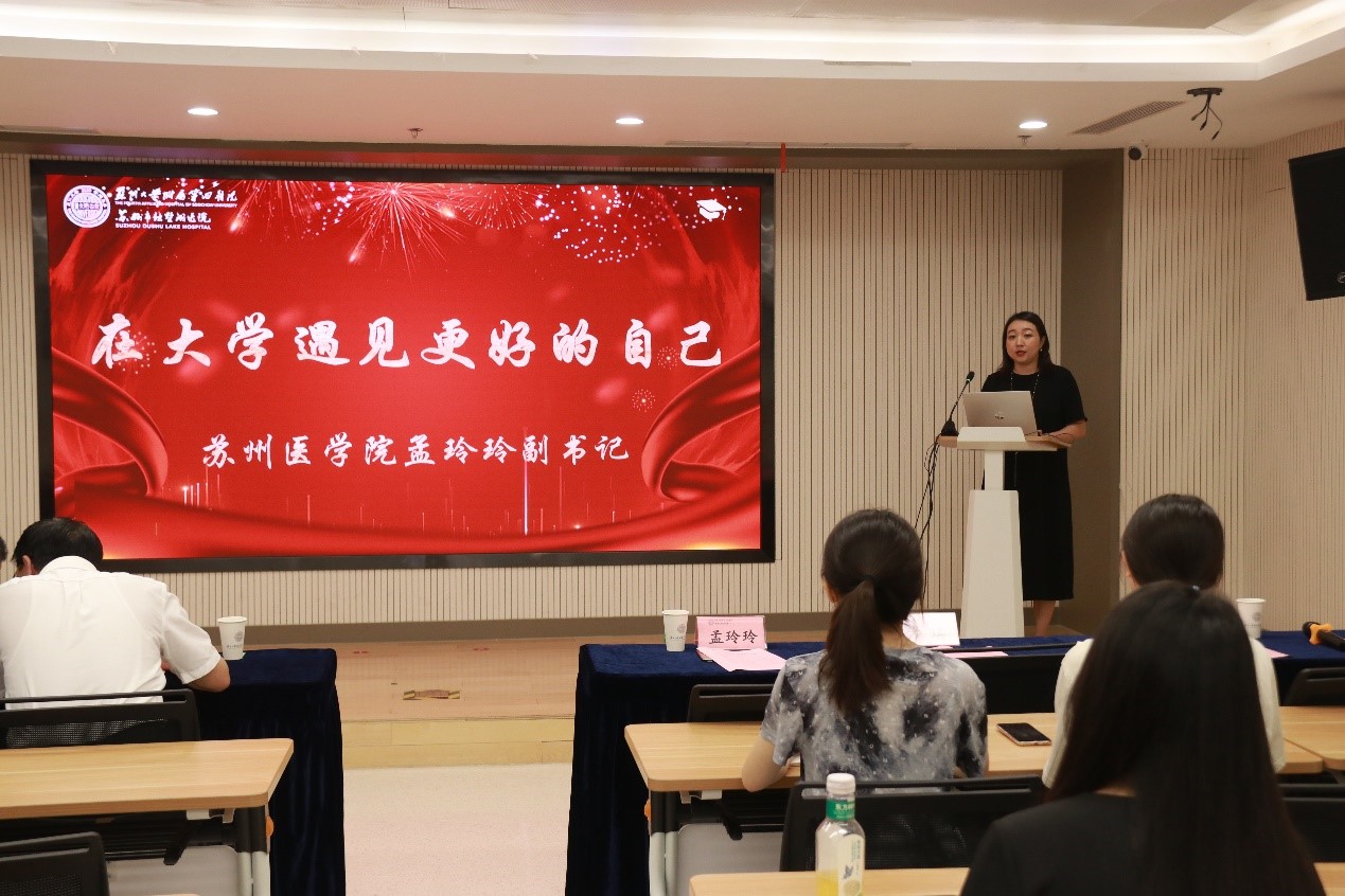 随后,苏州医学院孟玲玲副书记以“在大学遇见更好的自己”为主题,从高校学习、生活、成长等多个角度,为新同学们提供了宝贵的建议和指导,展望了同学们未来繁忙而充实求学生涯,鼓励新生在大学期间全面提升自我、实现个人价值。