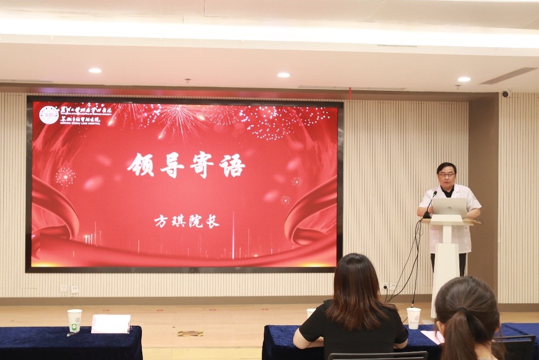新生欢迎仪式的尾声,方琪院长代表医院向2024级新生们的到来表示热烈欢迎。方院长表示,医学是一条光荣而充满挑战的征途,医院对新生们未来的医学生涯寄予厚望。他指出,医学生涯不只是医术,还需注重医学人文教育,涵养医德医风,尊重每个生命。他勉励各位新生要以仁爱之心、精湛之术,践行医者初心使命;勤奋学习,不断精益求精,为医疗卫生事业的发展贡献自己的力量。