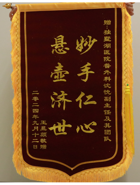 患者王女士赠送锦旗感谢我院普外科沈忱医生团队