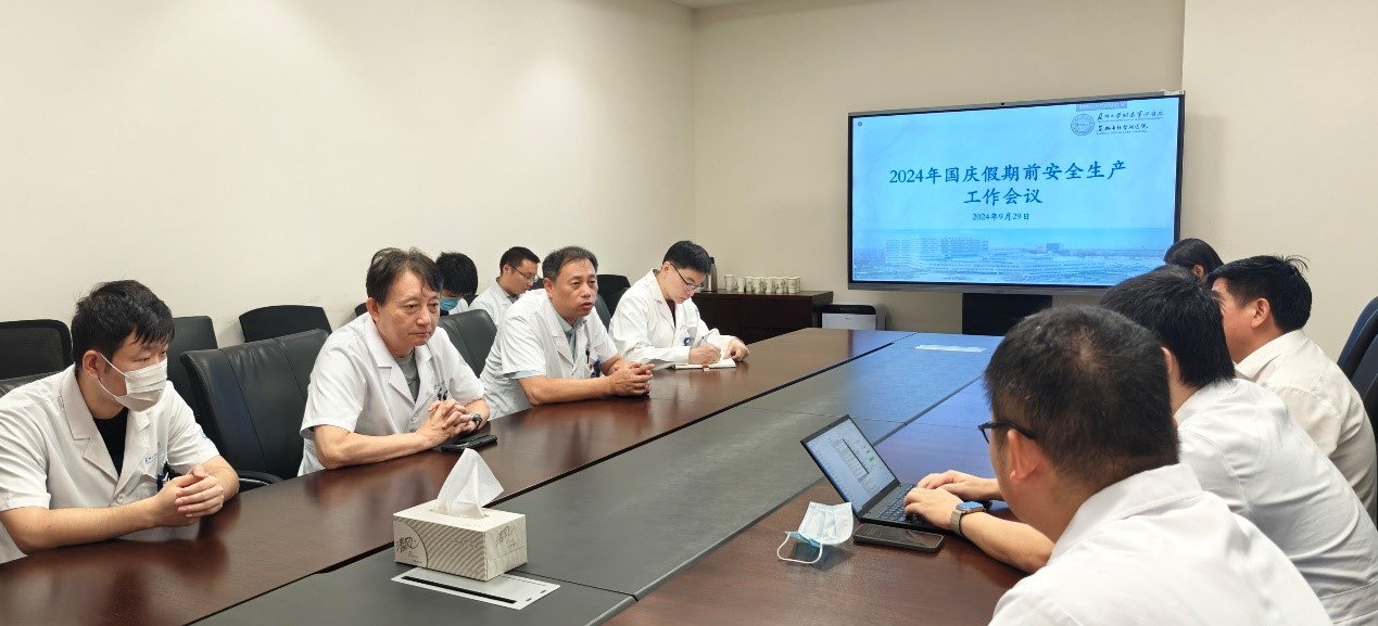 随着国庆节的临近,为确保节日期间医院各项工作安全稳定运行,提高医院安全生产管理水平,有效防范和遏制各类安全生产事故的发生,9月29日上午,苏州大学附属第四医院副院长于荣俊主持召开国庆假期前安全生产工作会议,并同步开展节前安全生产大检查活动。旨在全面排查安全隐患,落实安全责任,确保节日期间医院运行的安全稳定。