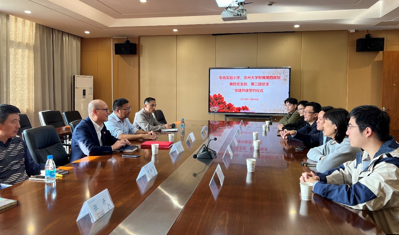 为进一步发挥公立医院公益性属性,助力校园“明眸皓齿”行动,强化党团引领作用,10月24日,由苏州大学附属第四医院组织人事处牵头,第四党支部和第二团总支一行与苏州工业园区车坊实验小学进行共建交流,签订教育基地共建协议书。