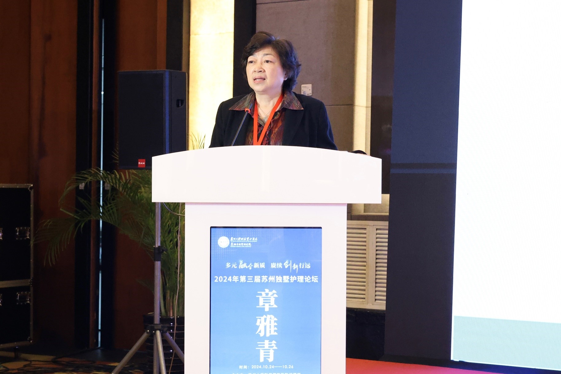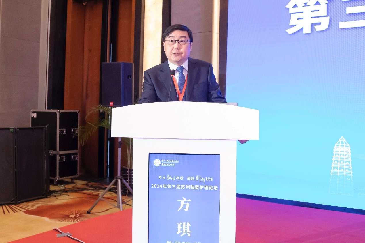 苏大附四院党委书记侯建全教授为论坛致辞:苏州大学附属第四医院始终致力于通过高精尖人才队伍的打造、高层次生物医药转化、区域医工结合、中新国际化合作,精心塑造“独墅医帜”这一品牌特色,深化具有园区特色的“1+11+X”医联体模式。他指出,护理队伍的发展始终与医院同频共振,希望护理团队以学科交叉融合发展将新质生产力的“高效率、高质量、高科技”核心理念,真正融入卫生健康事业的全生命周期健康管理之中。