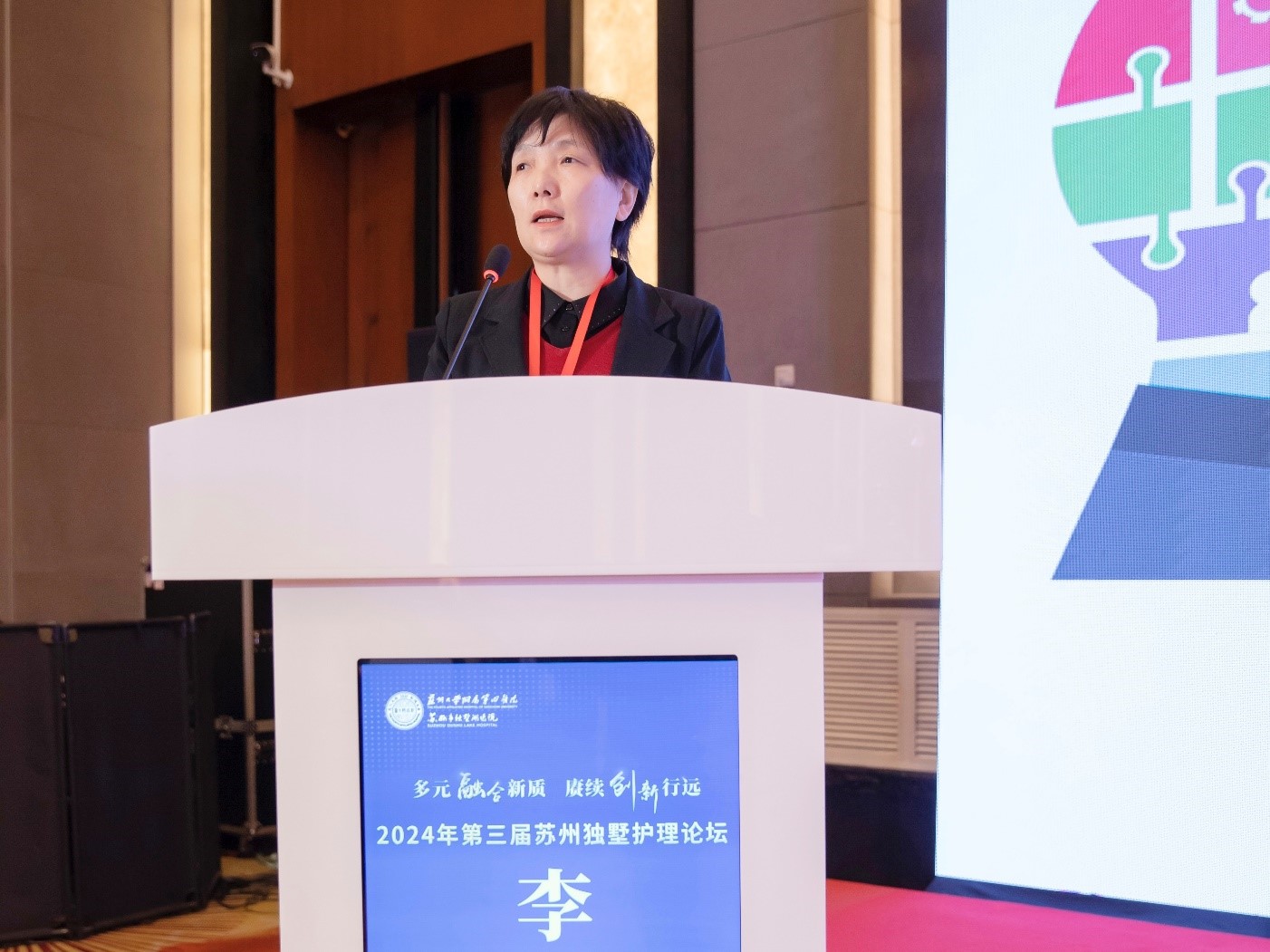 本次论坛共含括5个市级继续教育项目。中华护理学会骨科护理专业委员会副主任委员、江苏省护理学会骨科护理专业委员会主任委员、苏州大学附属第四医院护理部主任王洁在骨科护理分会场、静脉治疗护理分会场分别作《新质生产力下脆性骨折的智慧管理》《高质量发展下互联网+护理静脉治疗的应用》的主题授课。王主任以独特的视角和丰富的经验,提出了护理新质生产力下如何进行医工结合,打造脆性骨折、静脉治疗智慧管理新模式。