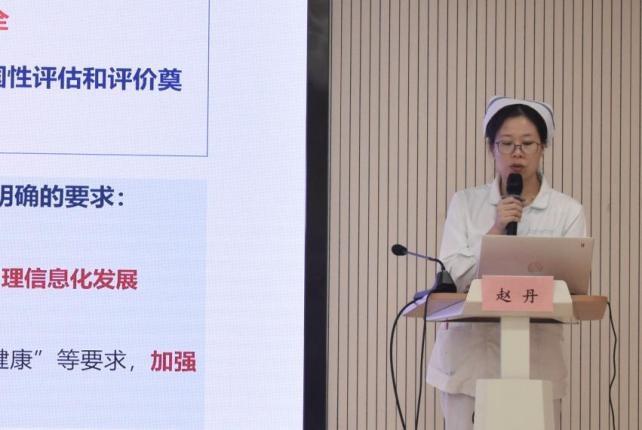 工业园区护理质量控制中心秘书赵丹细致讲解了园区护理质控数据上报平台的使用说明。通过该平台可对各项护理质量指标数据进行高效汇集、统计分析,形成全面而深入的园区护理质量监测数据分析报告,从而有效促进全区护理质量的持续优化与螺旋式上升。