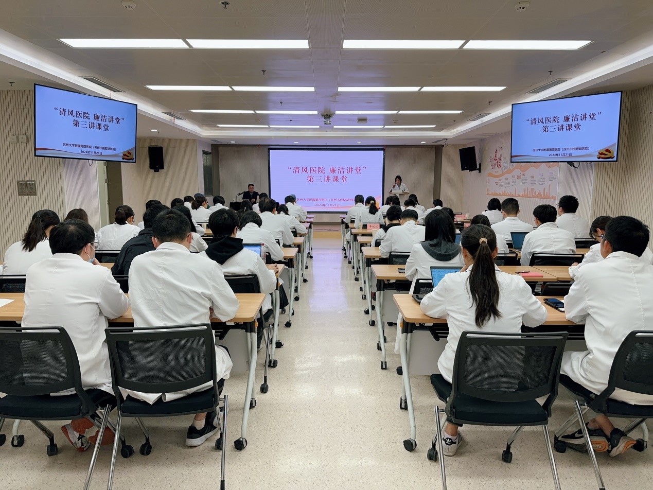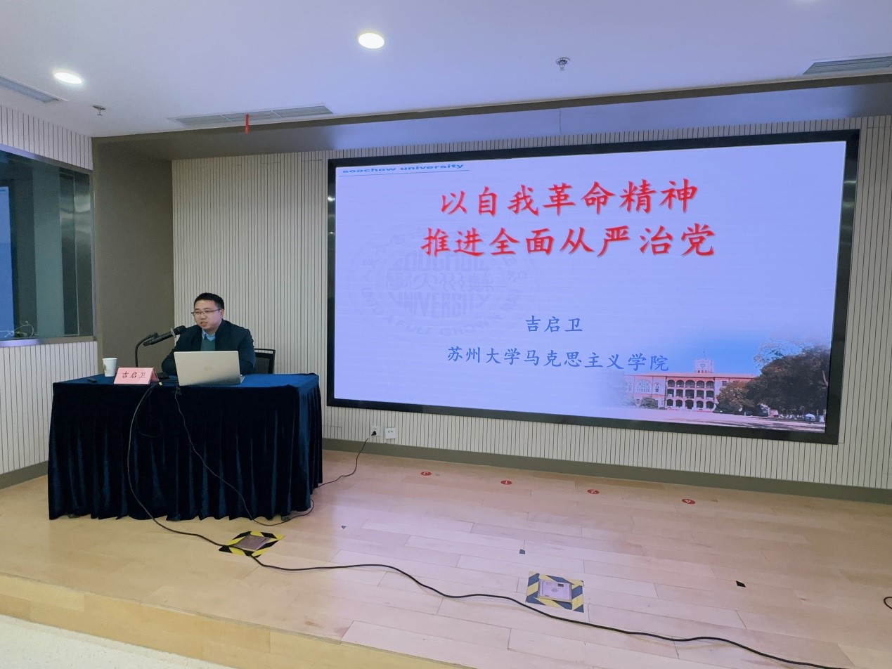 为进一步学习、落实习近平总书记关于全面从严治党的重要论述,坚定不移推进医院全面从严治党向纵深发展,11月21日下午,苏州大学附属第四医院举办了“清风医院 廉洁讲堂”第三讲课堂活动。苏州大学马克思主义学院习近平新时代中国特色社会主义思想概论教研室主任吉启卫受邀作专题讲座。苏州大学附属第四医院党务部门负责人、各支部委员以及部分科室职工代表参加本次活动。
