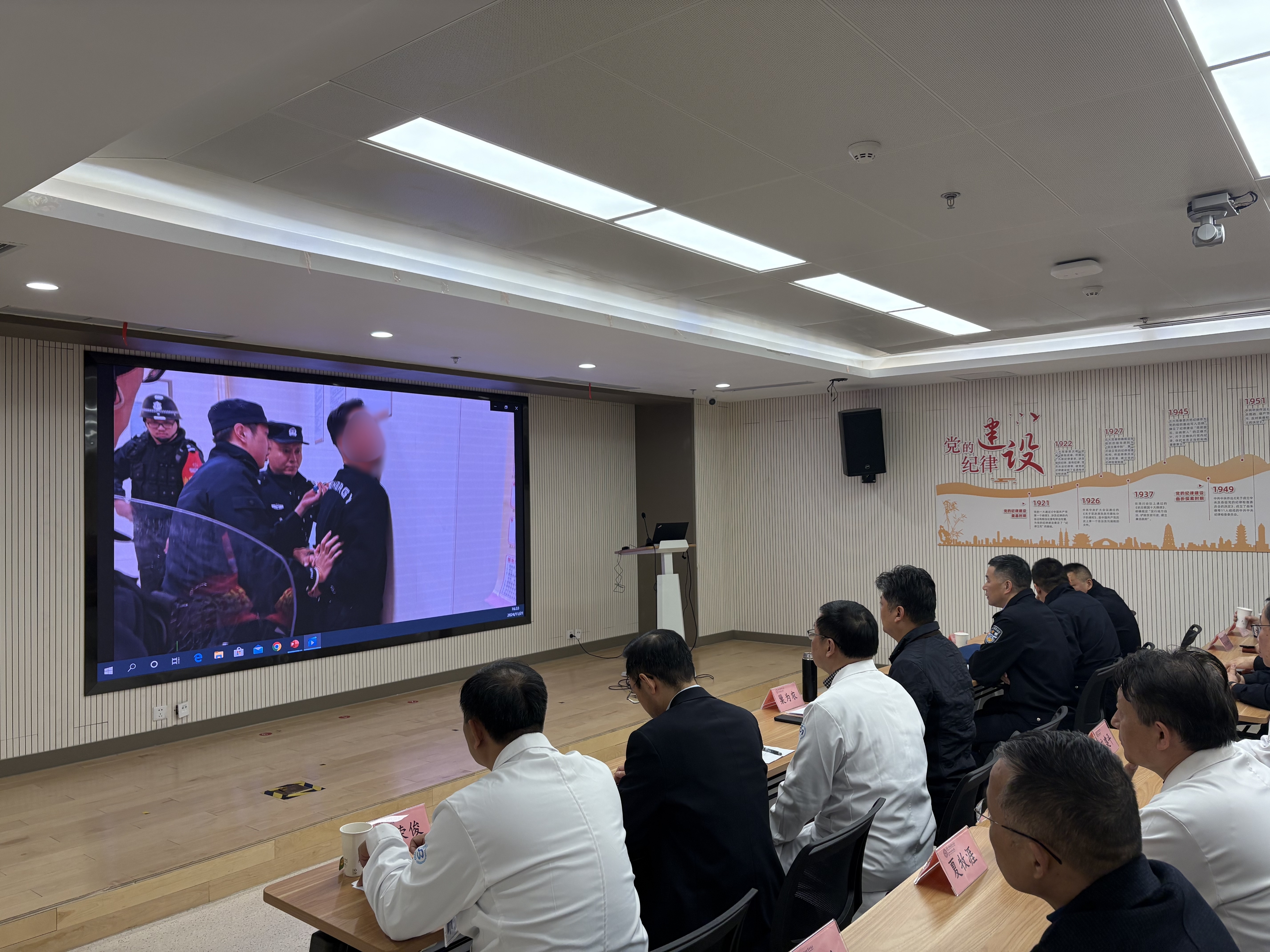 录像放映后,内保大队汪洋大队长对于近期园区各医疗机构检查情况进行通报,同时对后期医院安全管理方面提出了几点专业建议:人员层面,成立巡逻处突小队,针对重点位置开展武装巡逻,更好地响应和处置突发事件;技术层面,建议优化门急诊重要区域的监控系统,做到自动识别与预警;机制层面,建立涉医案事件防范联动机制,加强医院与公安的协商沟通机制,及时会商化解医患纠纷。