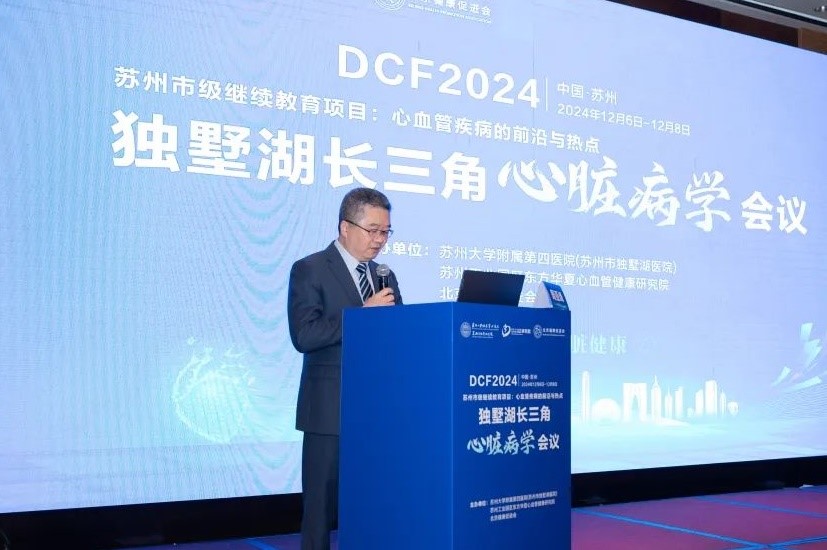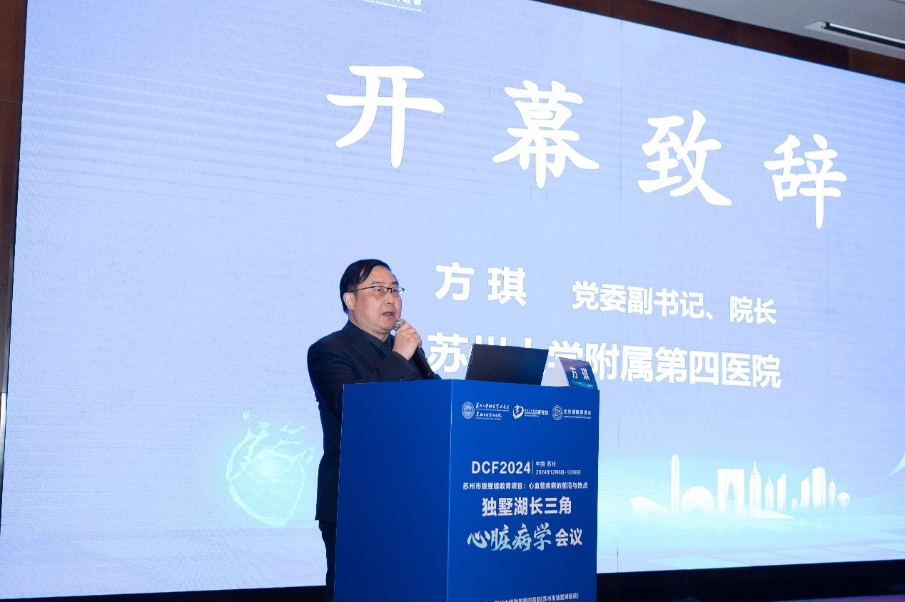 由苏州大学附属第四医院主办的2024苏州市级继续医学教育项目“心血管疾病的前沿与热点”暨独墅湖长三角心脏病学会议(DCF 2024)于12月7日上午在江苏苏州独墅湖畔开幕,苏州市医学会会长谭伟良,苏州工业园区卫健委副主任巢为农,苏州大学附属第四医院院长方琪等领导与嘉宾出席开幕式,来自全国各地的300余名医务人员通过线上或线下途径参加到本次盛会。开幕式由苏州大学附属第四医院副院长周亚峰教授主持。