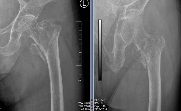 患者庄老太太,已是96岁高龄,平素体检,生活完全能够自理。此次在家中不慎摔倒,家属带着老人家至我院急诊。入院时庄老太太左髋部肿痛畸形、活动受限。影像学检查发现是“左股骨粗隆间骨折”。股骨粗隆间骨折是老年人群体常见的骨折,对老年患者危害极大,如不能得到及时正确的治疗,足以危及患者命。在1年内的死亡率可以达到20%!所以这一部位的骨折被认为是“人生最后一次骨折”。这对于已经96岁高龄的庄老太太更是一道难以迈过的坎。而保守治疗则需要长期卧床,这对老年人来说,几乎不可避免的会发生褥疮、深静脉血栓、坠积性肺炎、尿路感染等并发症,并且不排除死亡风险。手术治疗是帮助患者渡过难关的有效途径,但同样具有相当大的围手术期风险。姜为民主任在与家属充分沟通后,老太太的四位女儿一致同意手术,并对手术可能的风险表示理解。