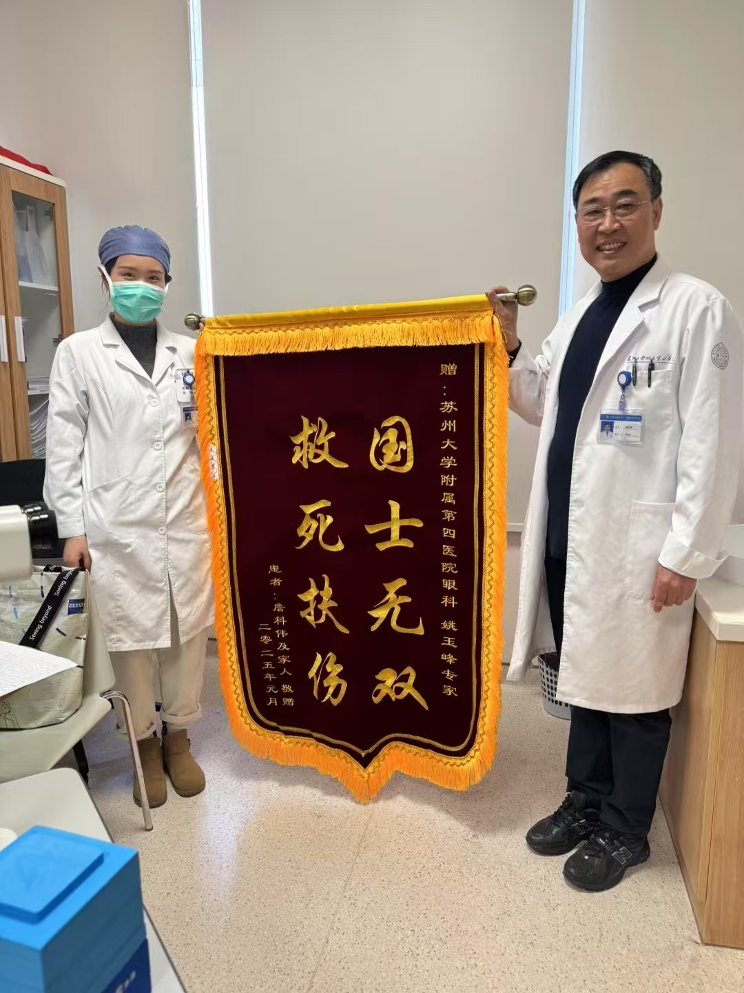 患者詹女士及家属赠送锦旗感谢我院姚玉峰教授