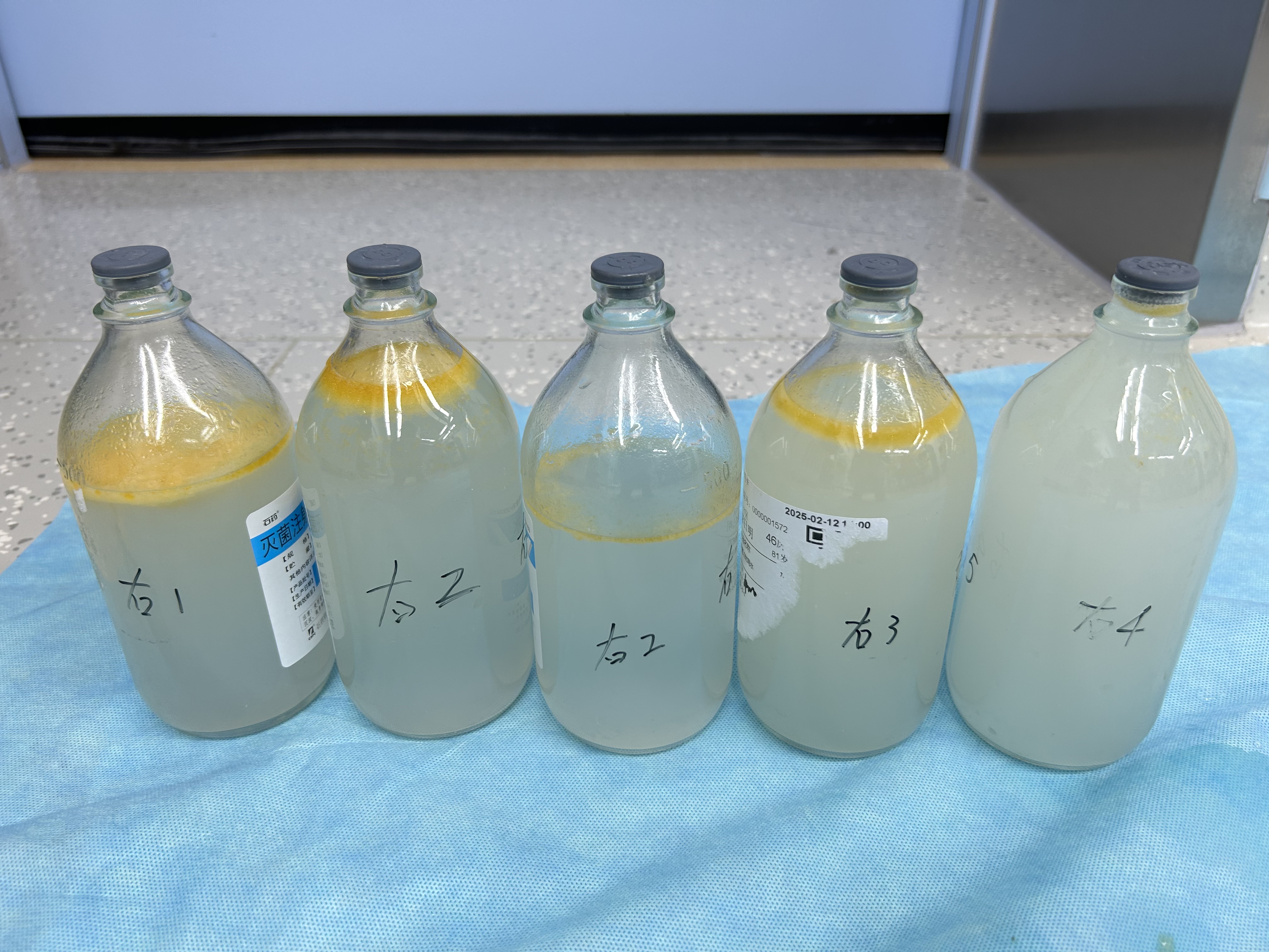 确定病因后医疗团队迅速制定周密的治疗方案,考虑到患者肺部的严重状况,决定分阶段进行全肺灌洗治疗。2月13日下午,在麻醉科的大力配合下,医疗团队为患者实施了单侧右肺灌洗术。手术过程严谨而精细,经口置入35号双腔气管插管至左主支气管,确保单侧左肺在手术过程中得到稳定的有创呼吸机辅助通气。细支气管镜进一步观察,确保支气管左侧气囊卡住左肺支气管开口,随后开始关键的灌洗环节。以37℃的 1000ml 生理盐水多次灌洗右肺,经气管插管负压吸引出灌洗液,重复4次,灌洗液逐渐变清,共回收灌洗液约3500ml。2月17日,再次开展左肺灌洗术,同样采用 37℃的 1000ml 生理盐水对左肺进行多次灌洗,重复操作6 次,灌洗液逐渐变清,累计回收灌洗液约 5500ml。术后经气管镜复查显示双侧气管腔内分泌物明显减少,吸出剩余液体。整个操作过程顺利,患者生命体征平稳,术后给予高呼气末正压(PEEP)维持通气,待患者情况稳定后顺利拔管,双肺灌洗术治疗取得成功。目前,患者正在精心的护理和观察下恢复。