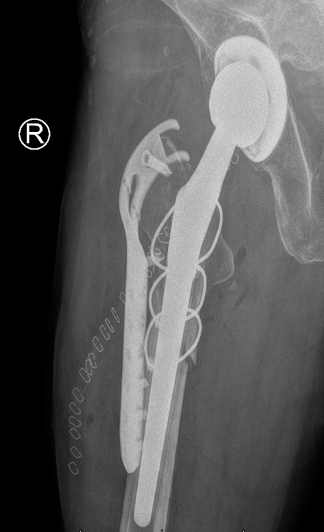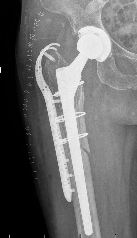 翻修术后摄片提示骨折复位满意,内固定在位