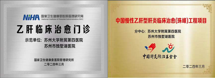 2024年3月,苏大附四院感染病科在省内率先挂牌,正式获批成为国家卫健委授权的“乙型肝炎临床治愈门诊”,并被中国肝炎基金会授予“珠峰项目”示范基地,推动慢乙肝规范化管理,提升区域医疗影响力。此外,科室设有脂肪肝与自身免疫性肝病专病门诊、发热门诊、肠道门诊,常规开展各型肝病、重症肝病、感染性疾病的精准诊疗,为患者提供全面、高效、个体化的医疗服务。