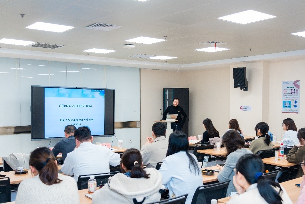 最后,蒋军红主任聚焦C-TBNA和EBUS-TBNA这一技术进行经验分享。蒋军红主任结合自身丰富的操作经验,详细讲解了C-TBNA和EBUS-TBNA在肺部疾病诊断中的关键作用。从淋巴结定位、穿刺路径的规划、操作技巧等方面都进行了详细阐述。在分享过程中,蒋军红主任指出EBUS-TBNA技术在提高肺部疾病诊断准确性、减少创伤方面都有显著优势,让在场医生对这项技术有了更为直观且深刻的认识。