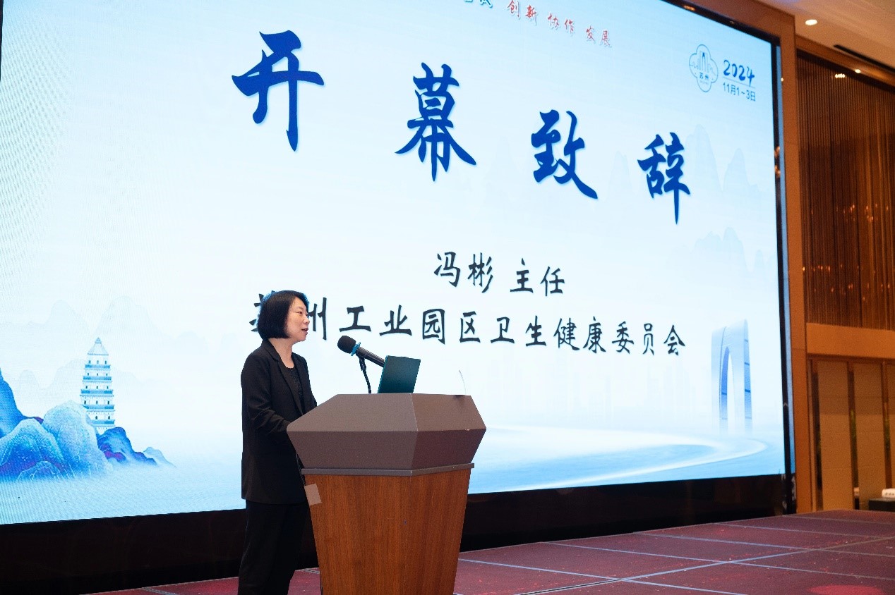 苏州工业园区卫生健康委员会主任冯彬致辞,冯主任指出,此次会议将推动高血压、泛血管相关领域的整体医疗水平及科技创新的进步。苏大附四院进一步发挥引领辐射作用,助力园区生物医药产业高质量发展,加快生物医药产业创新集群,成为基础向临床转化应用和普及推广的前沿试验田,为建设成为国内一流、国际先进,立足国内、面向国际的研究平台奠定基础。