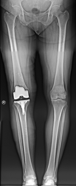 患者杨阿姨右膝疼痛已持续7年之久,近6个月来病情明显加重,严重影响日常生活。巧合的是,杨阿姨的亲属曾在21年前因为同样的疾病经姜为民主任诊治后完成过膝关节置换术,至今功能仍然良好。鉴于亲属的经历,杨阿姨此次慕名找到姜为民主任。姜主任仔细了解病情并综合评估后判断杨阿姨膝关节大量骨赘增生,关节间隙狭窄,需要接受关节置换手术。