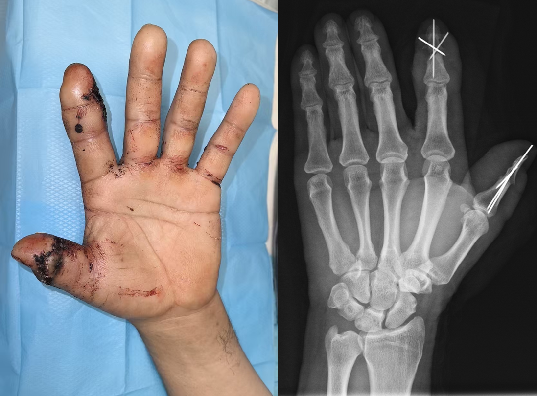 近日,苏大附四院骨科团队成功完成一例高难度左手拇指离断的再植修复手术,这是我院在显微外科与创伤修复领域实现的重大突破。术后患者再植拇指末梢血运良好、创缘愈合完全,已顺利出院。