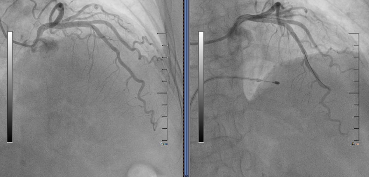 苏大附四院心内科周亚峰教授团队对患者进行了全面评估,确诊其为梗阻性肥厚型心肌病。在优化药物治疗无效后,团队决定采用PTSMA手术进行治疗。手术过程中测量显示患者左心室与主动脉根部压力阶差高达88mmHg,具备明确的介入治疗指征。术中,手术团队通过导管将药物及微粒球精准注入心脏冠脉间隔支血管,选择性消融异常增生的心肌组织,从而减轻左心室流出道的梗阻。术后,患者压力阶差降至10mmHg,胸闷症状显著改善,顺利康复出院。