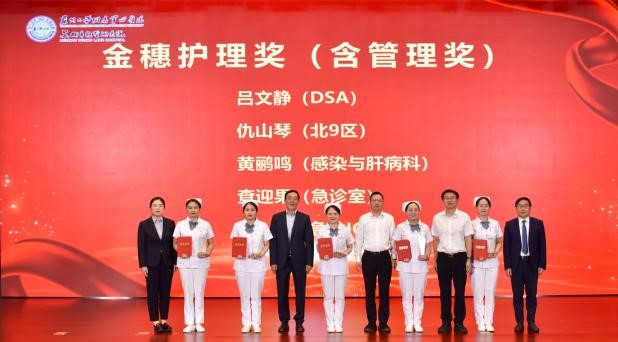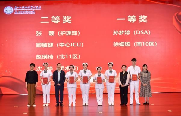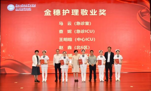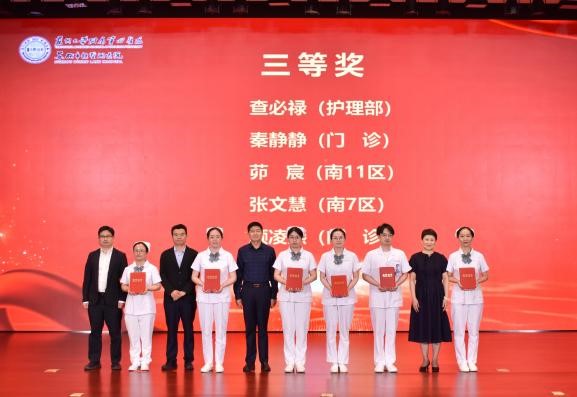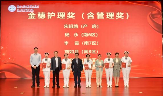 现场,为获得“金穗护理系列奖项”、“青年护士双语读书报告会”、“护理用品创新大赛”荣誉的职工进行颁奖。其中,妇产科赵鑫护士作为获奖代表发表感言,勉励同仁携手共进,以专业与温情续写护理事业新篇章。