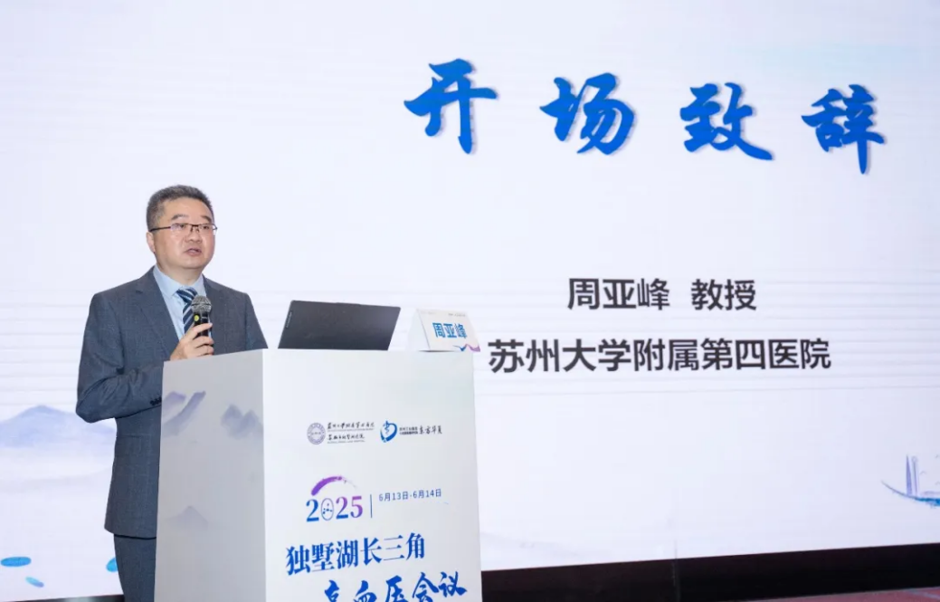会议开幕,苏州大学附属第四医院周亚峰教授首先向全体与会嘉宾和同道表示了最热烈的欢迎和最诚挚的感谢。他提到,来自长三角地区及国内外各地的专家学者齐聚一堂,共同探讨高血压诊疗的前沿与热点,充分体现了大家对该领域发展的关切和热情。他简要回顾了苏州大学附属第四医院的发展历程,同时介绍了医院心血管内科的建设成果与学科特色。最后,周亚峰教授衷心感谢所有参会专家、学者以及各界同仁对苏州大学附属第四医院心血管内科的长期支持与信任,并感谢大家对此次独墅湖长三角高血压会议的大力支持与积极参与。