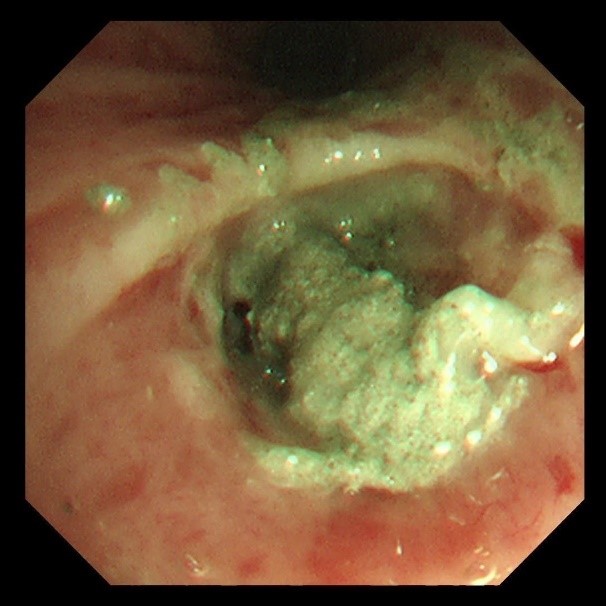 (超细支气管镜见左下叶背段远端支气管泥沙样物质)