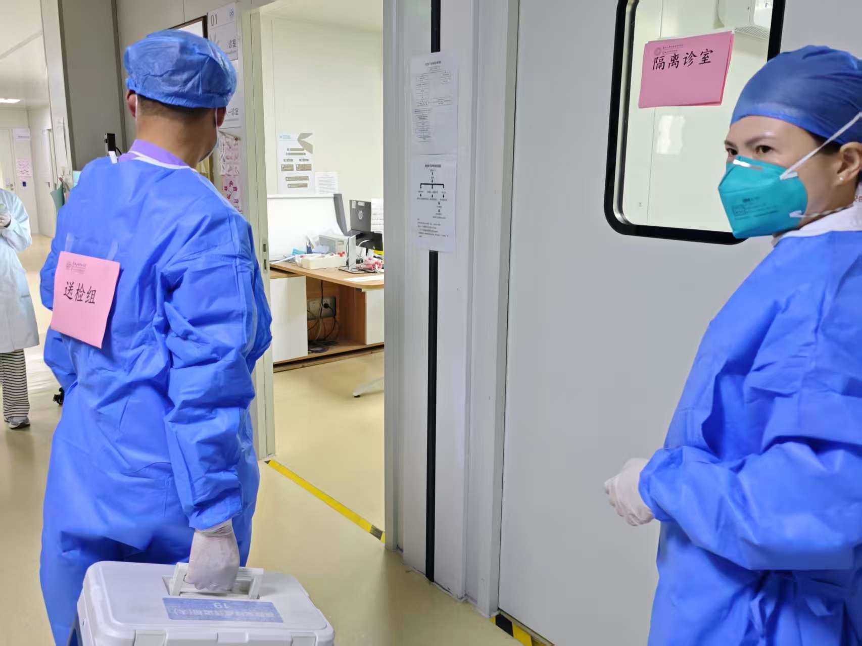 首先,发热门诊接诊医生严格防护,依据诊疗规范迅速完成问诊查体及初步判断,并向相关科室快速报告,启动应急程序。再后,感染管理处和门急诊办迅速响应设置隔离诊室,指导医护做好现场处置;公卫科迅速上报病例情况,联动多方共同处置疑似传染病;护士规范执行床边采样,缩短确诊窗口期;后勤保障部无缝衔接,高效安排样本转运并准备消杀资源;终末消毒、健康宣教并举,疫情防控闭环管理,首先,消毒人员严格按照技术规范,对隔离诊室实施全面的终末消毒,确保无遗漏、无死角。其后,公卫科对相关模拟接触者进行宣导,提升关键人群防护意识。