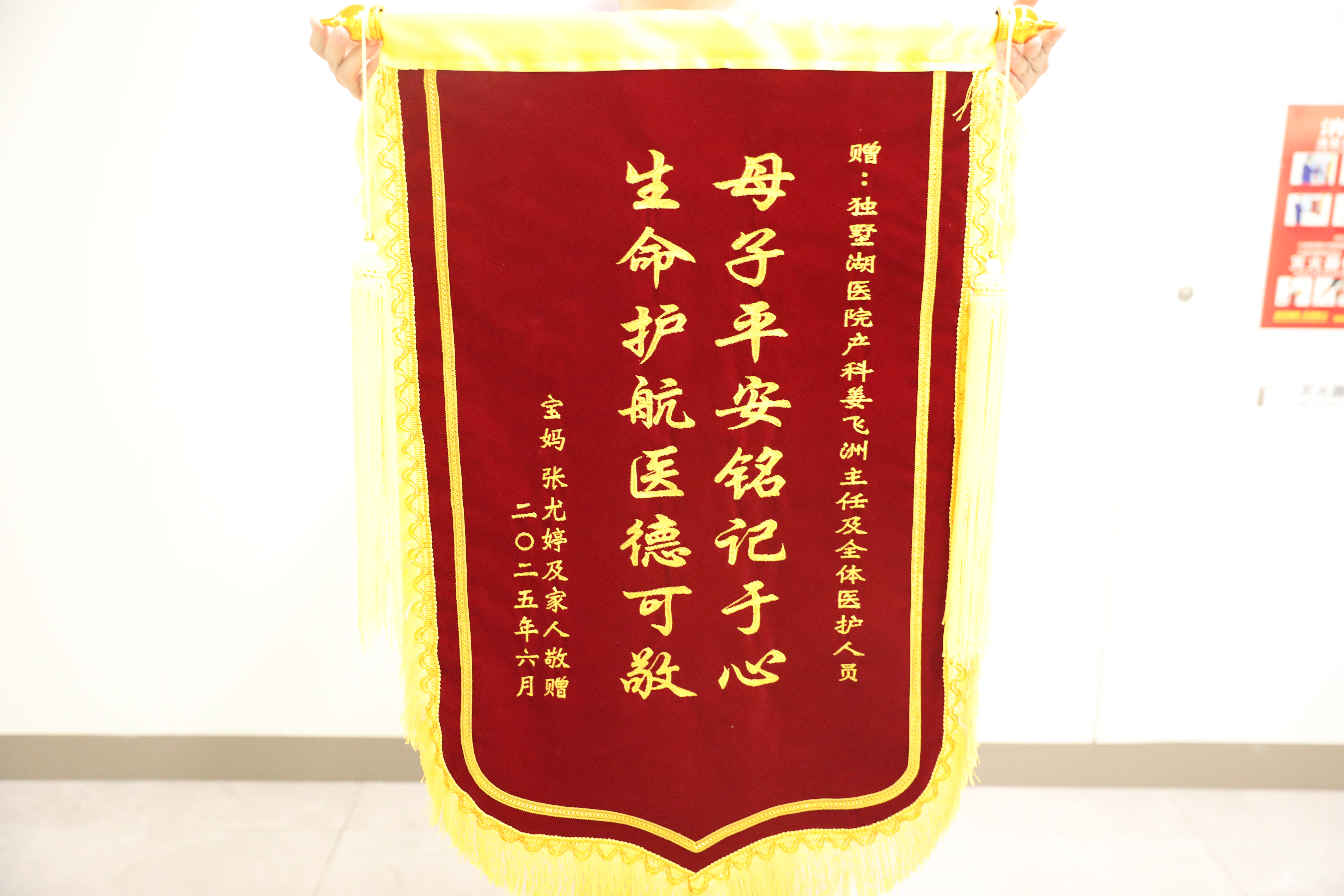 产妇张女士及家人赠送锦旗感谢我院妇产科姜飞洲副主任医师