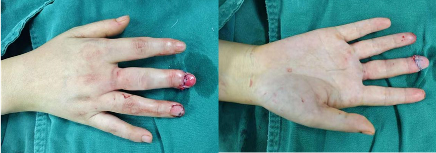 术后,在医护团队的精心治疗和严密监护下,患者再植的指尖顽强地存活了下来,顺利克服了静脉回流不畅等风险,血运稳定良好。此次手术不仅恢复了患者的手指功能和正常外观,更尽可能降低了断指对其职场工作造成的负面影响。