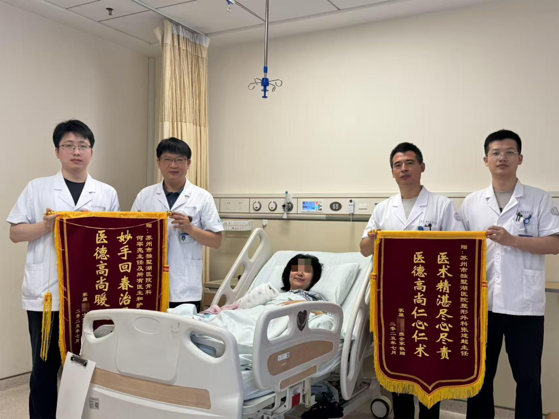 我院骨科于2024年被评为江苏省临床重点专科,开展了各类骨科疑难疾病的诊治,拥有丰富的经验,在科室主任姜为民的带领下不断创新,攻坚克难,解决了多种疑难杂症,在省内处于领先水平。以实际行动了敢于担当,救死扶伤,展现一心为病人的良好精神风貌。而我院整形外科在沈国良教授的带领下持续开拓进取,勇于创新,拓展科室业务诊疗范围、引进专科人才,影响力不断提升。本例手术,我院骨科和整形外科通力合作,展现了“1+1>2”的强大协同效应,为复杂创伤修复提供了最优解。我院首例高难度远节脱套伤断指再植的成功,为未来开展如超显微神经修复、复杂游离皮瓣移植等更高精尖的显微外科手术奠定了坚实基础。