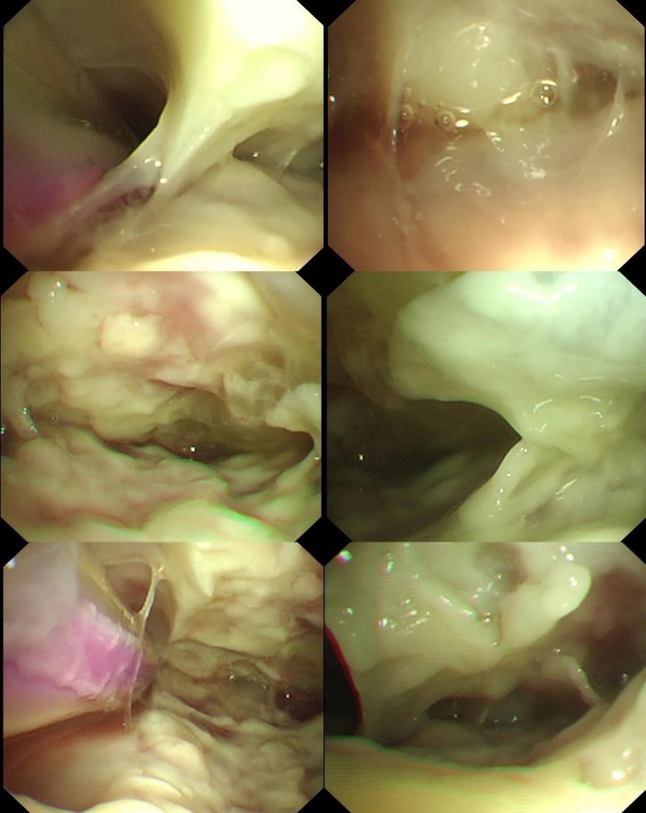 通过分次冷冻冻取技术,交替进行“冷冻-松解-清除”操作,逐步清除脓苔、坏死肉芽组织及剥离黏连带。采用1.9mm的冷冻探头多次反复清理脏层胸膜大量的粘连带、纤维素样组织及脓苔。使用0.9%生理盐水300ml反复冲洗胸腔,反复确认无活动性出血,肺复张良好。术后患者胸腔内脓苔显著减少,肺活动度恢复良好,病情得到有效控制,整个手术过程为1.5小时。