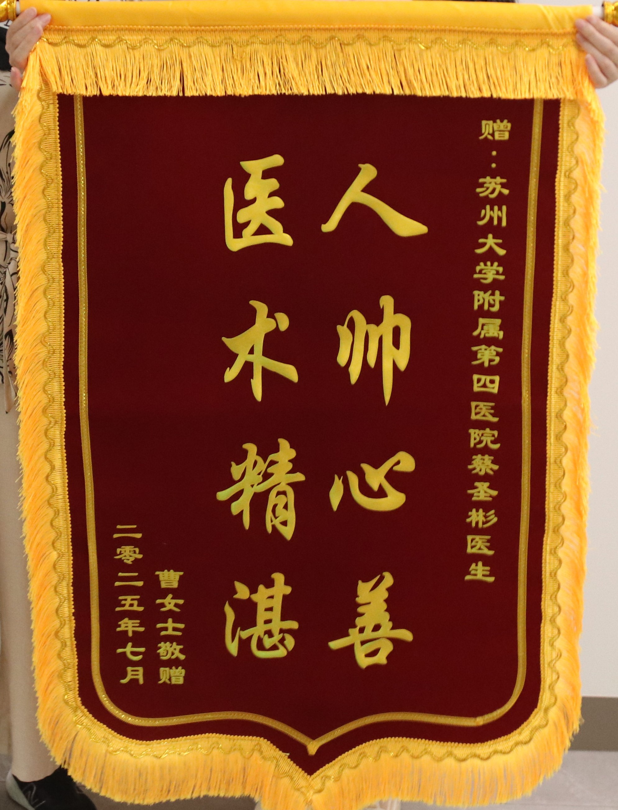患者曹女士赠送锦旗感谢我院普外科蔡圣彬主治医师