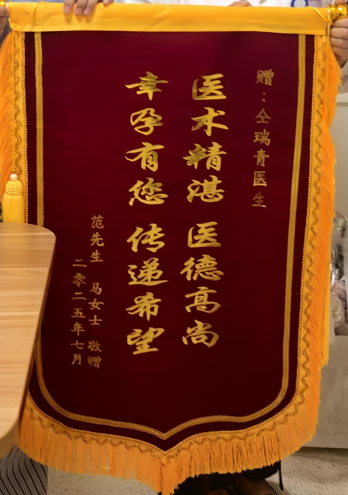 患者范先生马女士夫妇赠送锦旗感谢我院生殖医学中心仝瑞青副主任医师