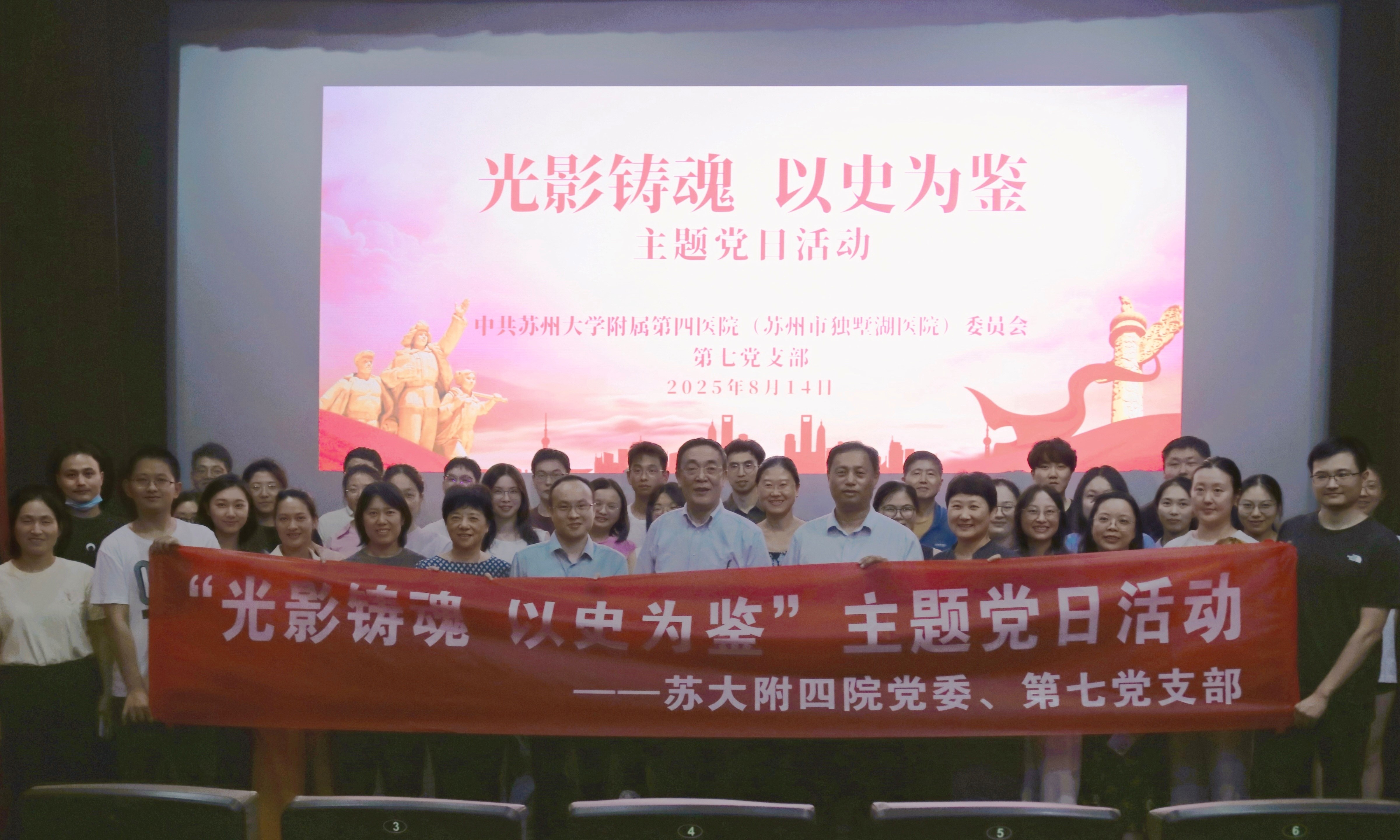 为纪念中国人民抗日战争胜利暨世界反法西斯战争胜利80周年,苏州大学附属第四医院第七党支部于近日组织支部全体党员开展了“光影铸魂 以史为鉴”主题党日活动,集体观看爱国主义题材影片《南京照相馆》。此次活动旨在通过光影艺术,带领党员们回顾那段沉痛历史,缅怀先烈,传承伟大抗战精神,进一步筑牢理想信念根基。