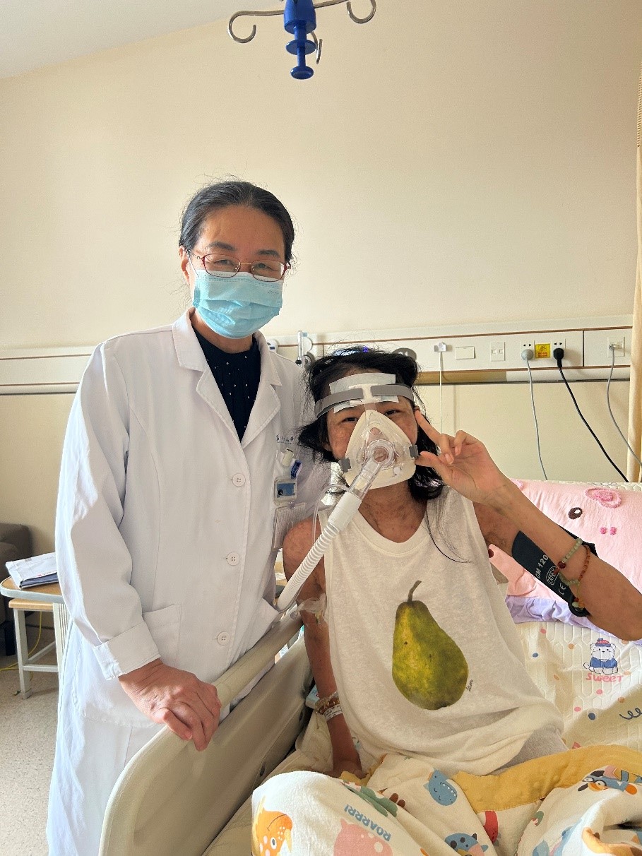通过此次治疗,患者胸闷气急进一步改善,CO2潴留减轻,甚至能脱离氧气一段时间,适当做些康复活动。看着女儿活力满满的样子,女孩的母亲紧紧握住蒋军红主任的手并不断感谢。蒋军红主任表示这是作为医生的职责,患者的坚强、家属的信任,也是医者不断前行的动力。医患同心,才能打赢这场与病魔的硬仗。
