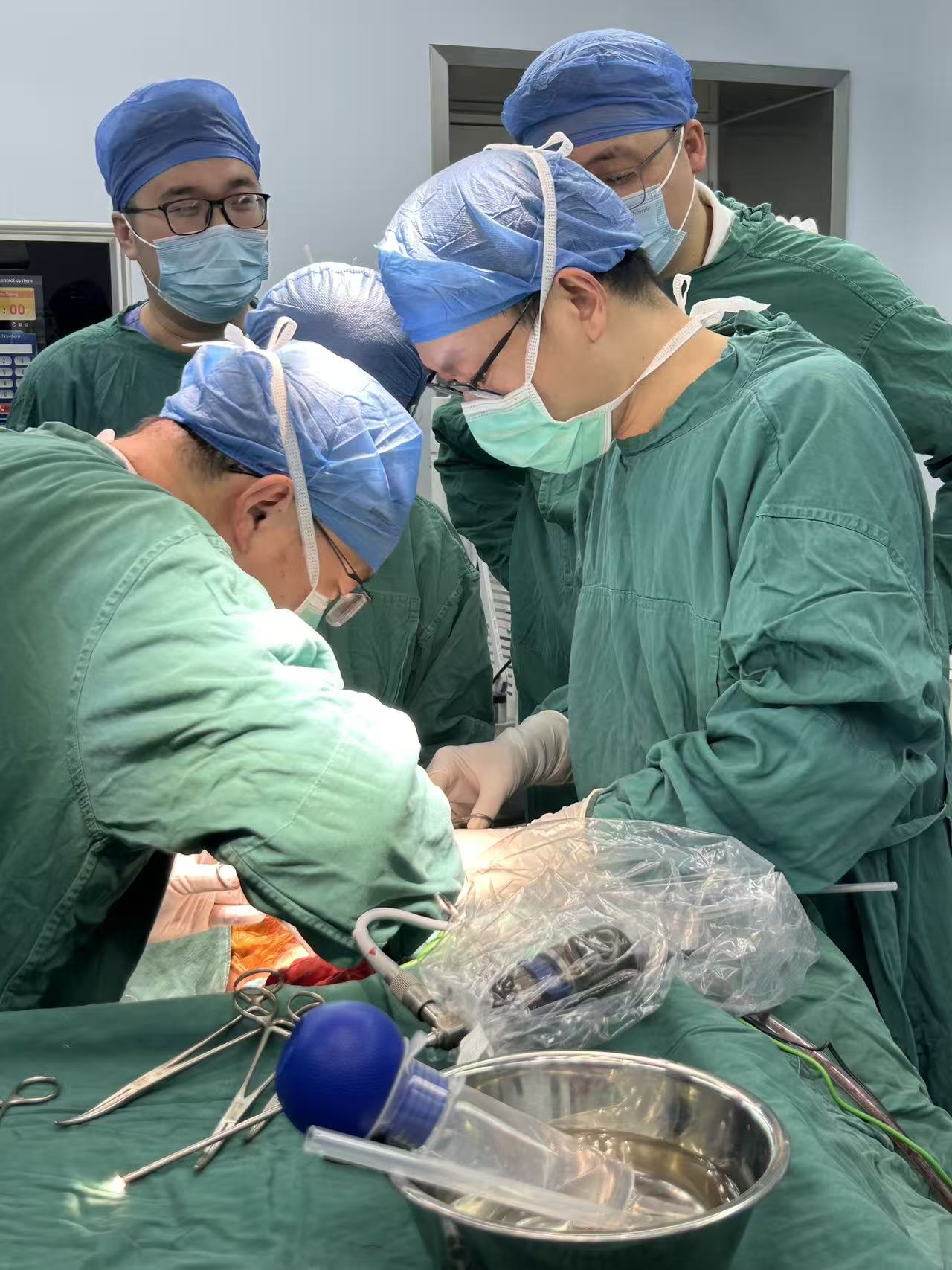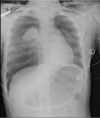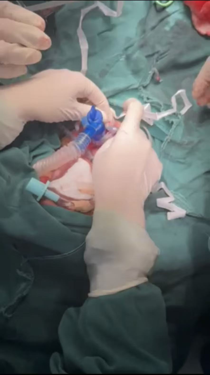 患者气道严重变形导致常规的气管插管效果不理想,时间就是生命!急诊科、耳鼻喉科、麻醉科医生当机立断,决定立即行床旁紧急气管切开术。在濒死的危急关头,手术团队临危不乱,以精湛的技术迅速建立了新的“生命通道”,呼吸机得以顺利接上,为后续抢救赢得了最宝贵的“黄金时间”。与此同时,胸外科团队火速到位,为患者施行双侧胸腔闭式引流术。当引流管置入胸腔的瞬间,大量高压气体喷涌而出,被严重压缩的肺脏得以复张,心脏的压迫即刻解除,患者的氧合指标得到了极大改善。