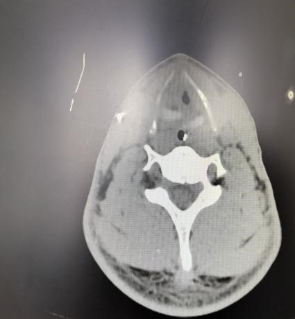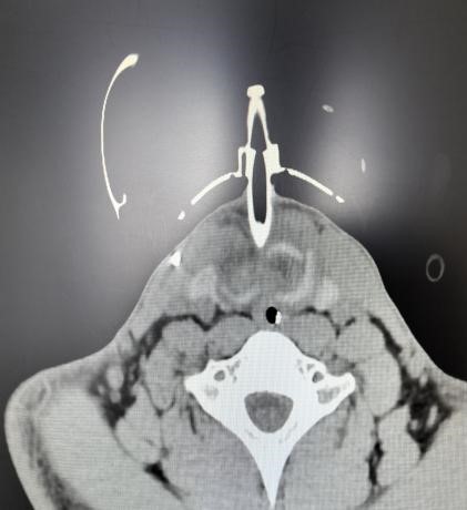 随后,患者被转入EICU(急诊重症监护室)进行高级生命支持。面对创伤性湿肺、纵隔皮下大量气肿、潜在的感染风险以及脑积水等复杂情况,在全身麻醉下,我院耳鼻喉科、麻醉科、呼吸内科等科室组成的专家团队为患者进行了急诊手术。术中发现患者环状软骨下方多个气管环前方碎裂,右侧环状软骨缺损严重。手术团队精准操作迎难而上,为患者精细清创,彻底清理了颈部淤血及游离的碎骨片,为重建创造基础。随后,在纤维内镜辅助下进行气道探查,明确损伤范围,确保无遗漏。同时,术中巧妙地将右侧咽壁内环状软骨膜与左侧带状肌缝合,顺利完成喉部功能重建,并缝合了颈前碎裂的气管。手术最后顺利拔除临时细套管,更换为更安全的7.5号气切套管,保障了术后气道的通畅与安全。