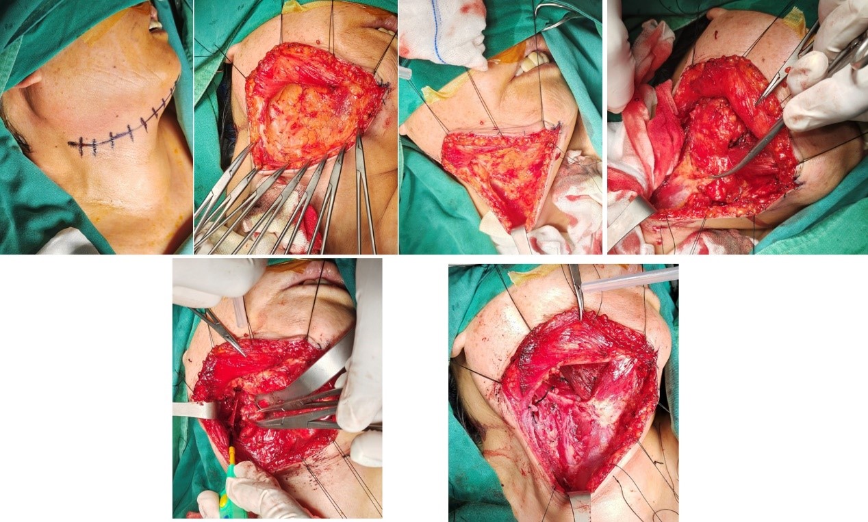 术中,口腔科唐子春副主任医师团队精准完成肿瘤扩大切除与颈淋巴清扫,在保留重要神经血管的前提下,为修复预留最佳条件,术中全程出血仅约100ml