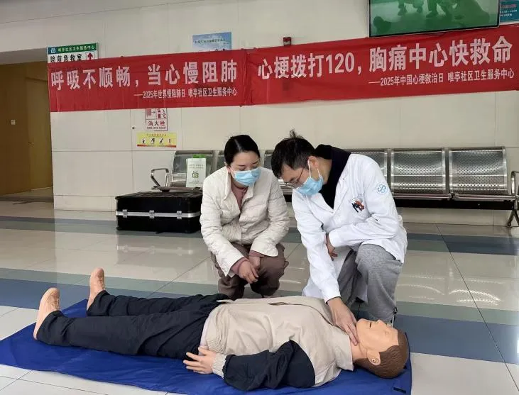 11月19日上午,苏大附四院多个科室携手唯亭社区卫生服务中心,为居民开展针对冠心病、心衰等心血管疾病相关问题提供专业科普。医护人员向市民发放了心梗防治和心肺复苏急救宣传手册,现场进行心肺复苏宣教和实操指导。许多市民踊跃参与模拟练习,现场气氛热烈。