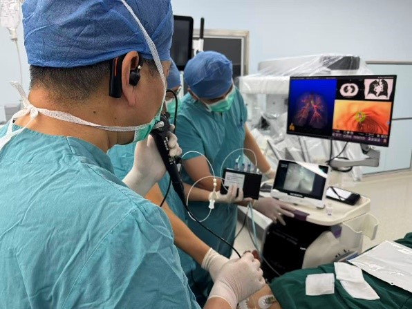 经过团队讨论,一个优化解决方案被提出:启用科室引进的前沿技术——电磁导航支气管镜系统。手术当日,在磁导航的实时引导下,手术团队娴熟地将吲哚菁绿注入目标结节区域,完成了对病灶的精确标定。整个过程患者无任何额外创伤,几乎零出血。