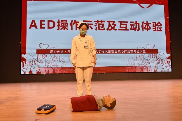 活动现场,心内科医护团队进行了现场操作演示,从判断意识、呼救求助、胸外按压到人工呼吸、AED除颤,完整展示了标准急救流程。演示结束后,医护人员指导师生进行模拟操作演练,手把手纠正动作,确保每位参与者都能掌握正确的按压位置、频率和深度。