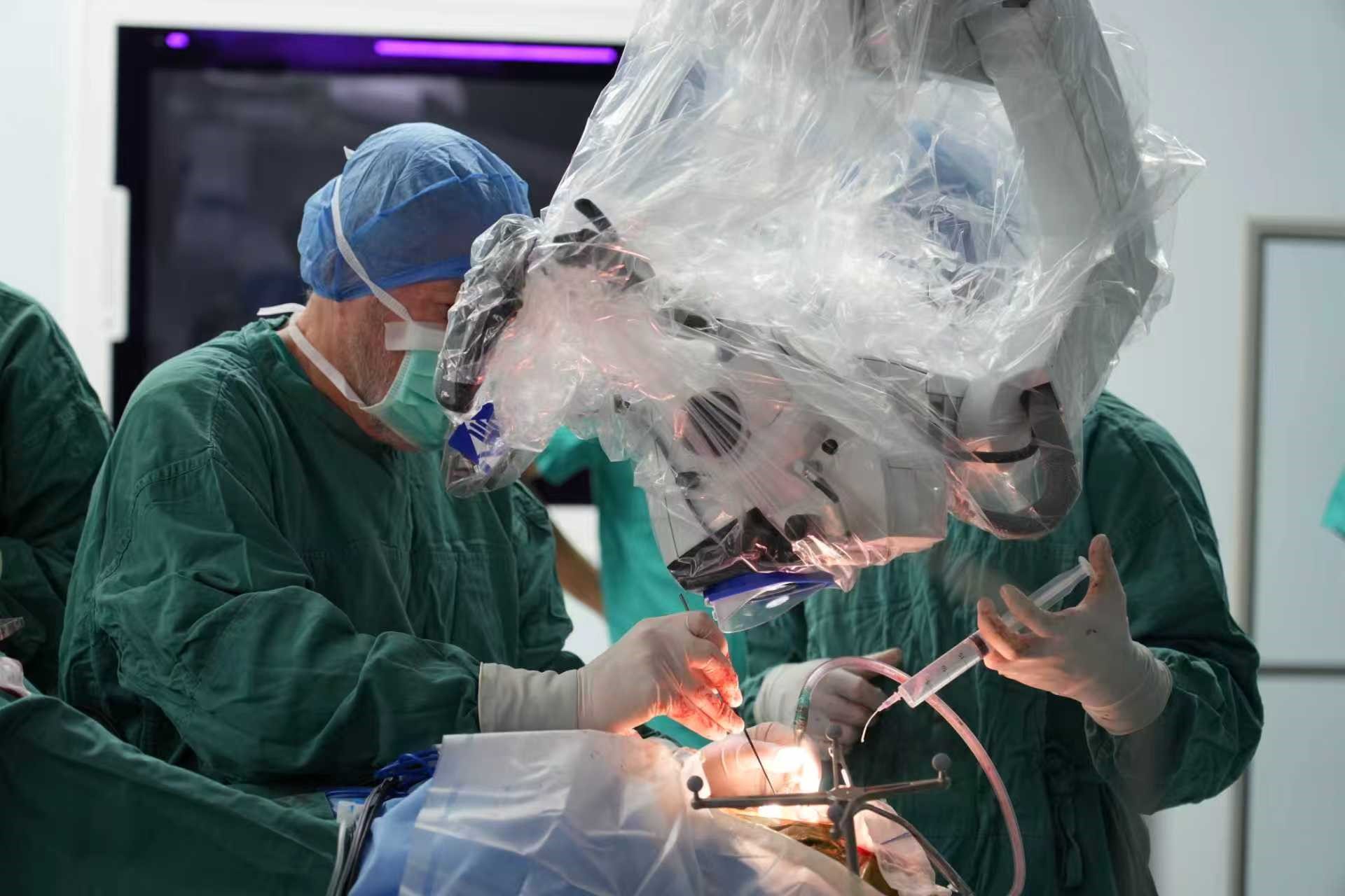 自苏州大学附属第四医院与国际神经外科医生集团签约合作以来,Bertalanffy(巴特朗菲)教授、Froelich(福洛里希)教授等专家已多次来院开展深度医疗合作。在手术室里,国际专家与我院神经外科团队紧密配合,针对脑干、丘脑、颅底等高难度区域的复杂肿瘤,实施了包括脑干海绵状血管瘤、颅底脑膜瘤、复杂胶质瘤等一系列高风险手术。百例手术,不仅是数字的积累,更是技术与信任的双重见证。