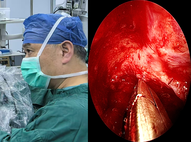 近日,我院凭借精湛的内镜微创技术,救治了一名66岁侵袭性真菌性蝶窦炎、视神经炎患者,助其恢复视力。患者先前因头痛和视力减退在外院就诊并接受手术治疗,但术后未能明确诊断导致治疗效果不佳。转入我院后,患者左眼已完全失去视力,无光感,头痛剧烈,经诊断发现霉菌组织侵犯视神经周围及鼻颅底区域。若不及时干预,将面临永久性失明、病变波及颅内甚至危及生命的风险。